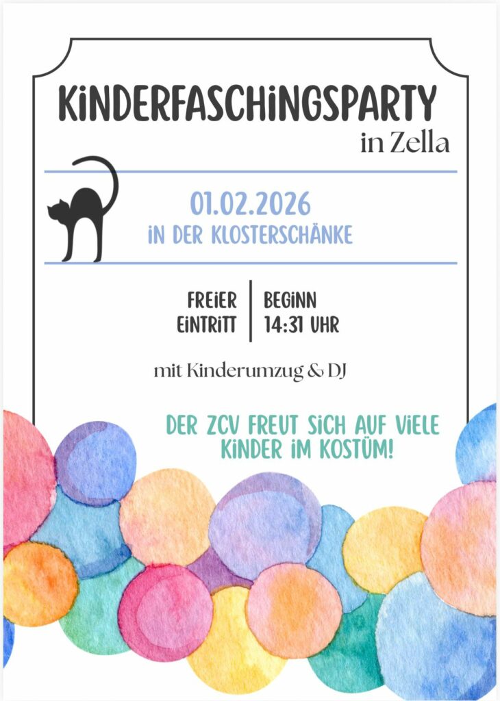 Der Karneval in Zella ist in vollem Gange! Schon am 16. Februar 2025 stand alles im Zeichen der jüngsten Narren. Der Kinderfasching in der Klosterschänke begeisterte mit einem fröhlichen Kinderumzug, tollen Kostümen und einem bunten Programm. Ein DJ sorgte für die richtige Stimmung, und viele kleine Prinzessinnen, Superhelden und Piraten tanzten ausgelassen. Der Zellaer Carnevalsverein (ZCV) freute sich über die große Beteiligung und die leuchtenden Kinderaugen.